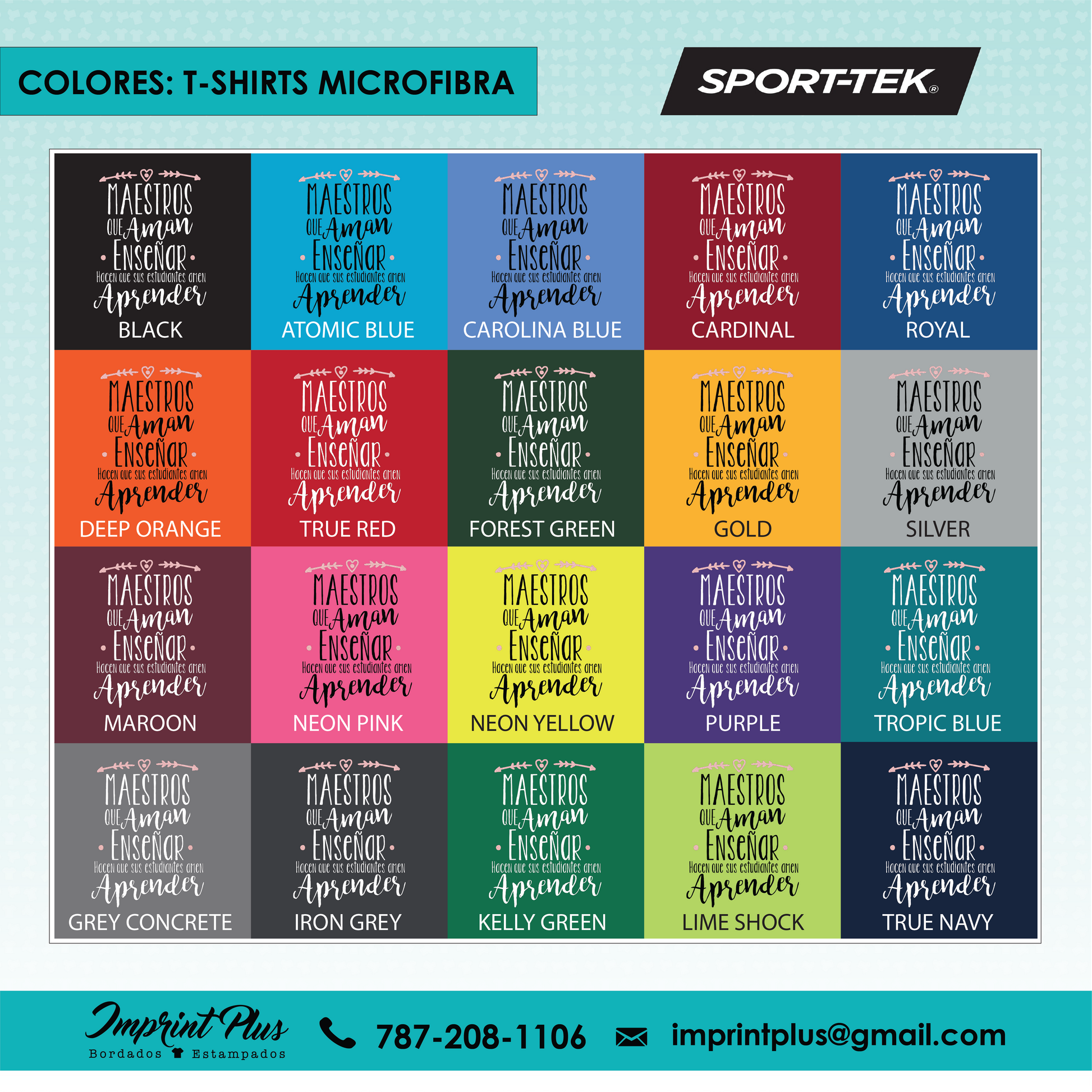 - Microfibra: Camiseta de microfibra marca Sport Tek, disponible en entalle unisex, mujer cuello V y mujer cuello redondo, ideal para un ajuste ligero y fresco.