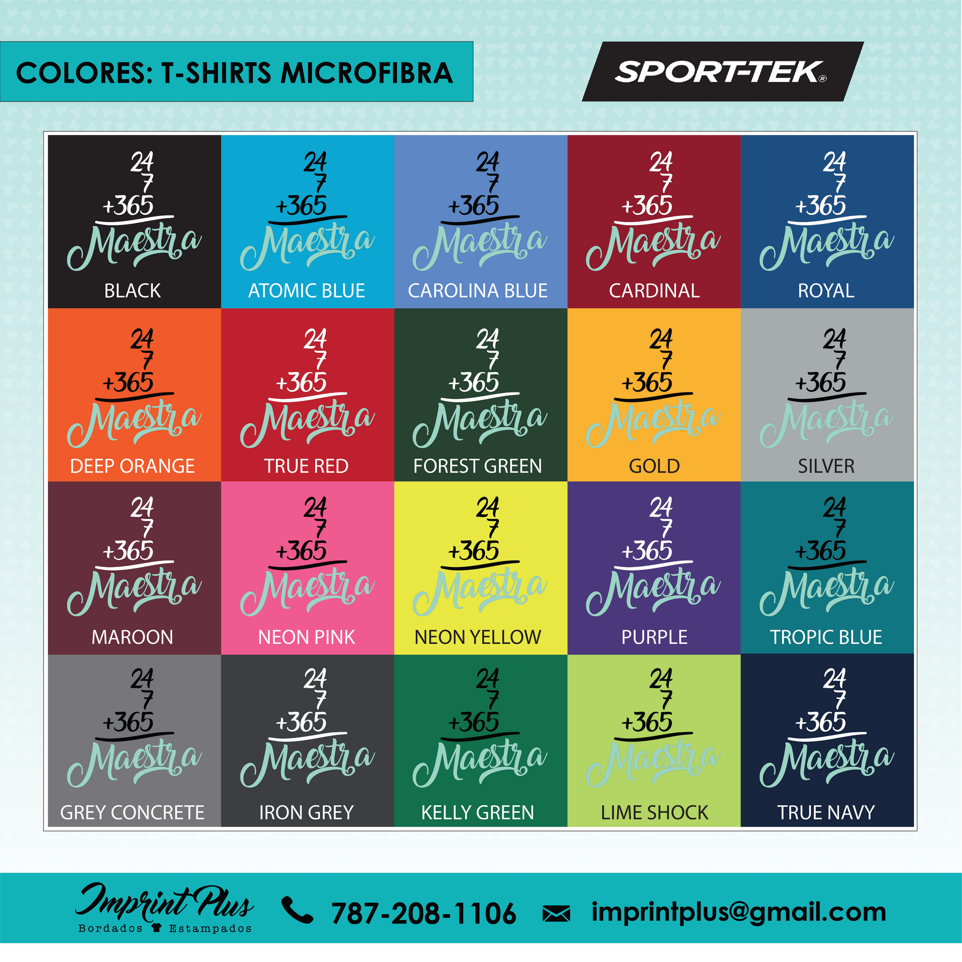 - Microfibra: Camiseta de microfibra marca Sport Tek, disponible en entalle unisex, mujer cuello V y mujer cuello redondo, ideal para un ajuste ligero y fresco.
