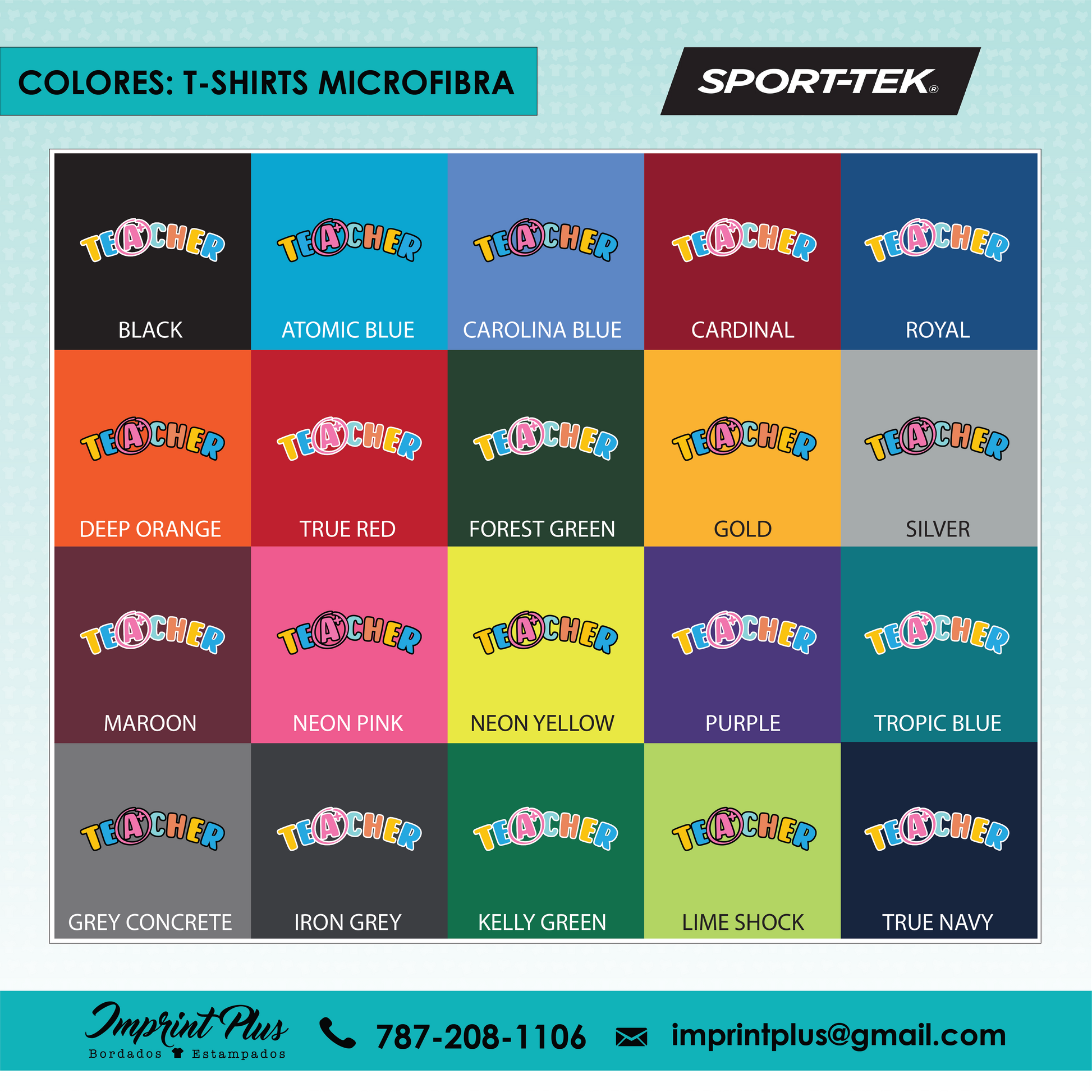 - Microfibra: Camiseta de microfibra marca Sport Tek, disponible en entalle unisex, mujer cuello V y mujer cuello redondo, ideal para un ajuste ligero y fresco.