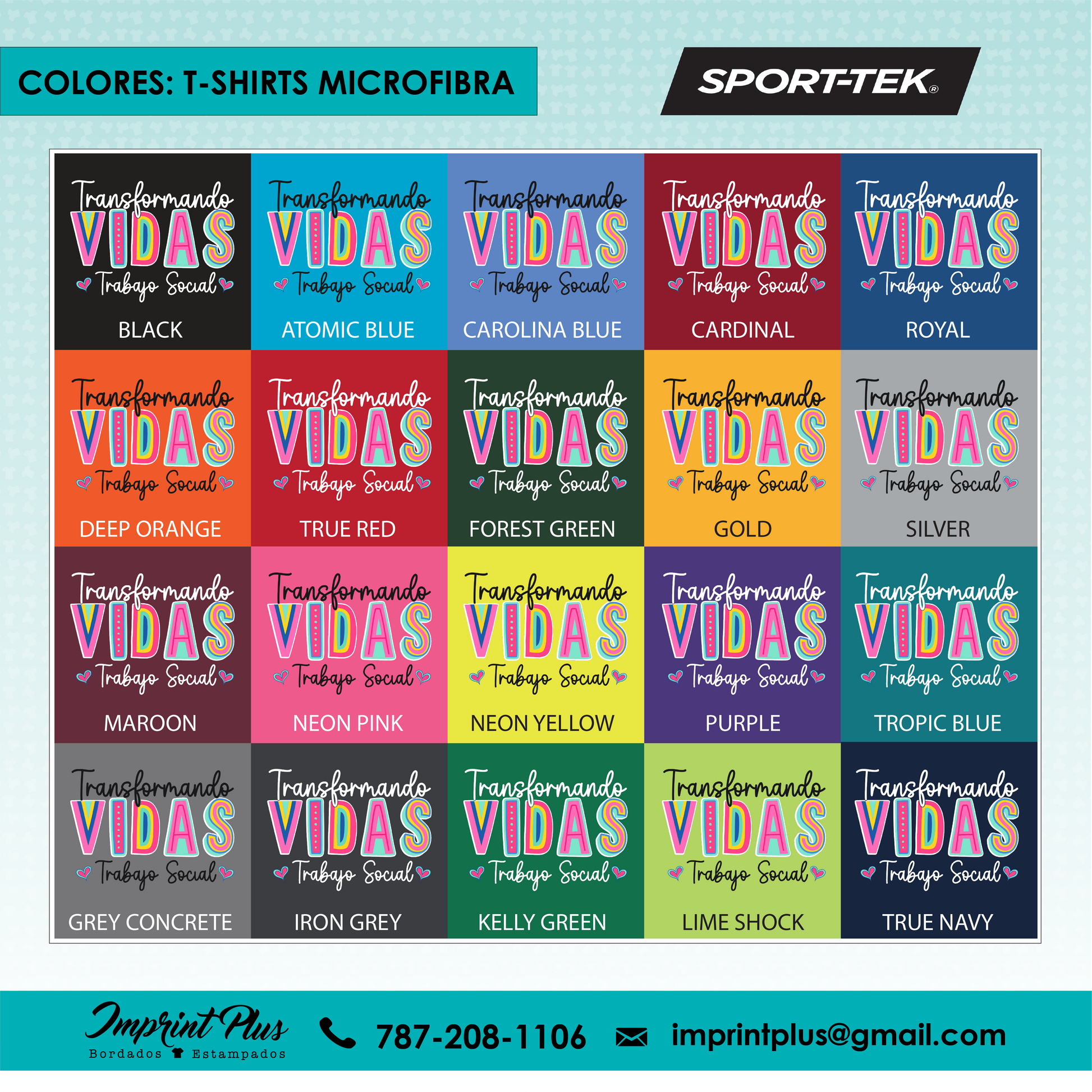 - Microfibra: Camiseta de microfibra marca Sport Tek, disponible en entalle unisex, mujer cuello V y mujer cuello redondo, ideal para un ajuste ligero y fresco.