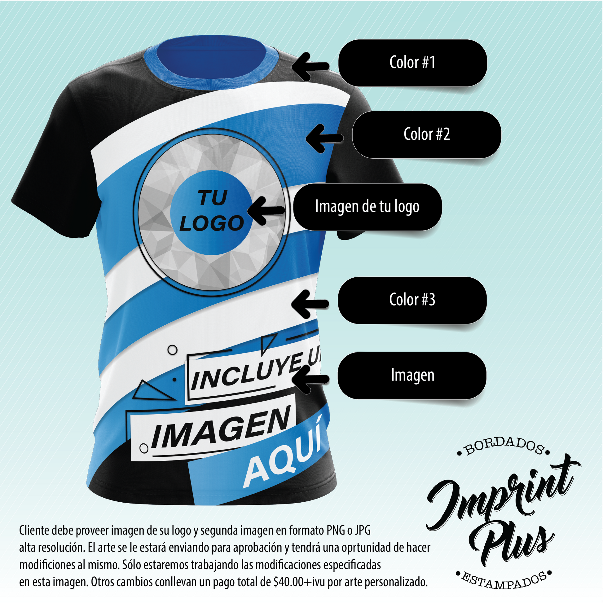 Descubre las posibilidades que te ofrecen nuestros modelos pre-diseñados "Custom full print". Estos modelos no conllevan costo por arte al ordenar mínimo 3 t-shirts.
