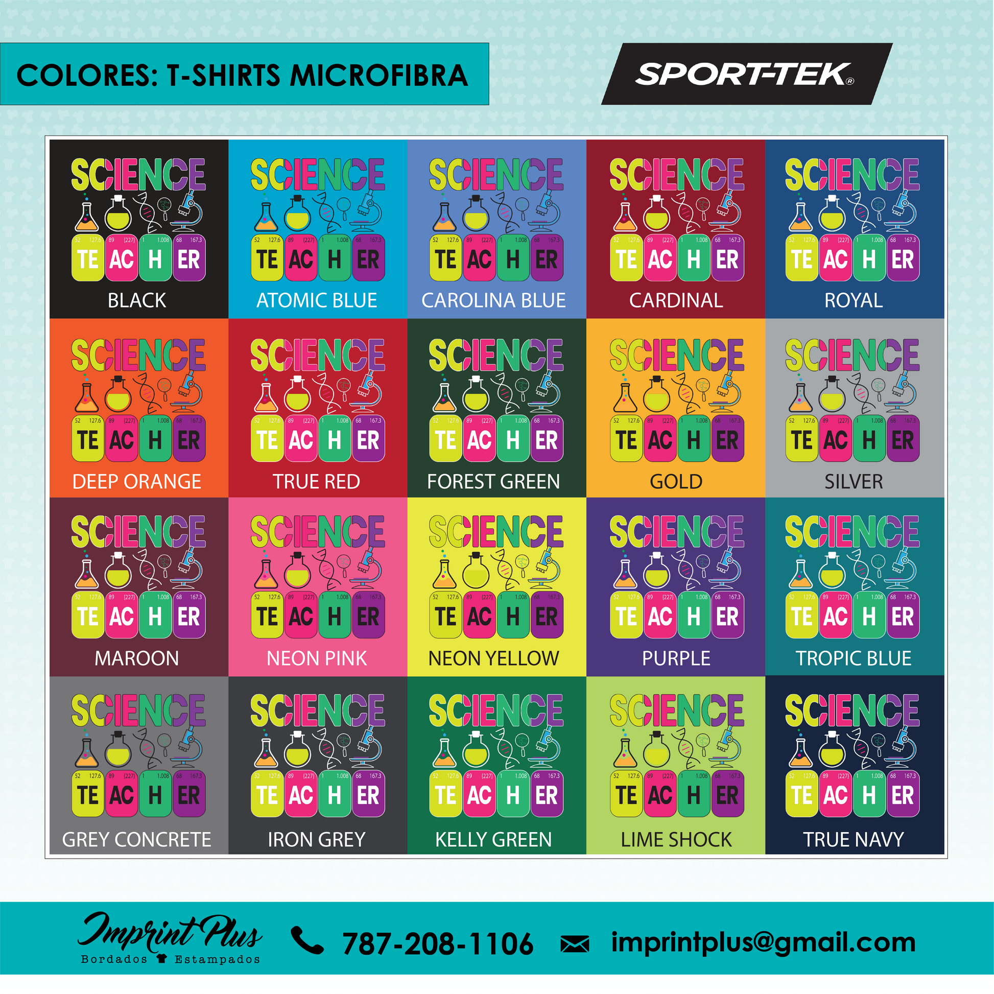 - Microfibra: Camiseta de microfibra marca Sport Tek, disponible en entalle unisex, mujer cuello V y mujer cuello redondo, ideal para un ajuste ligero y fresco.