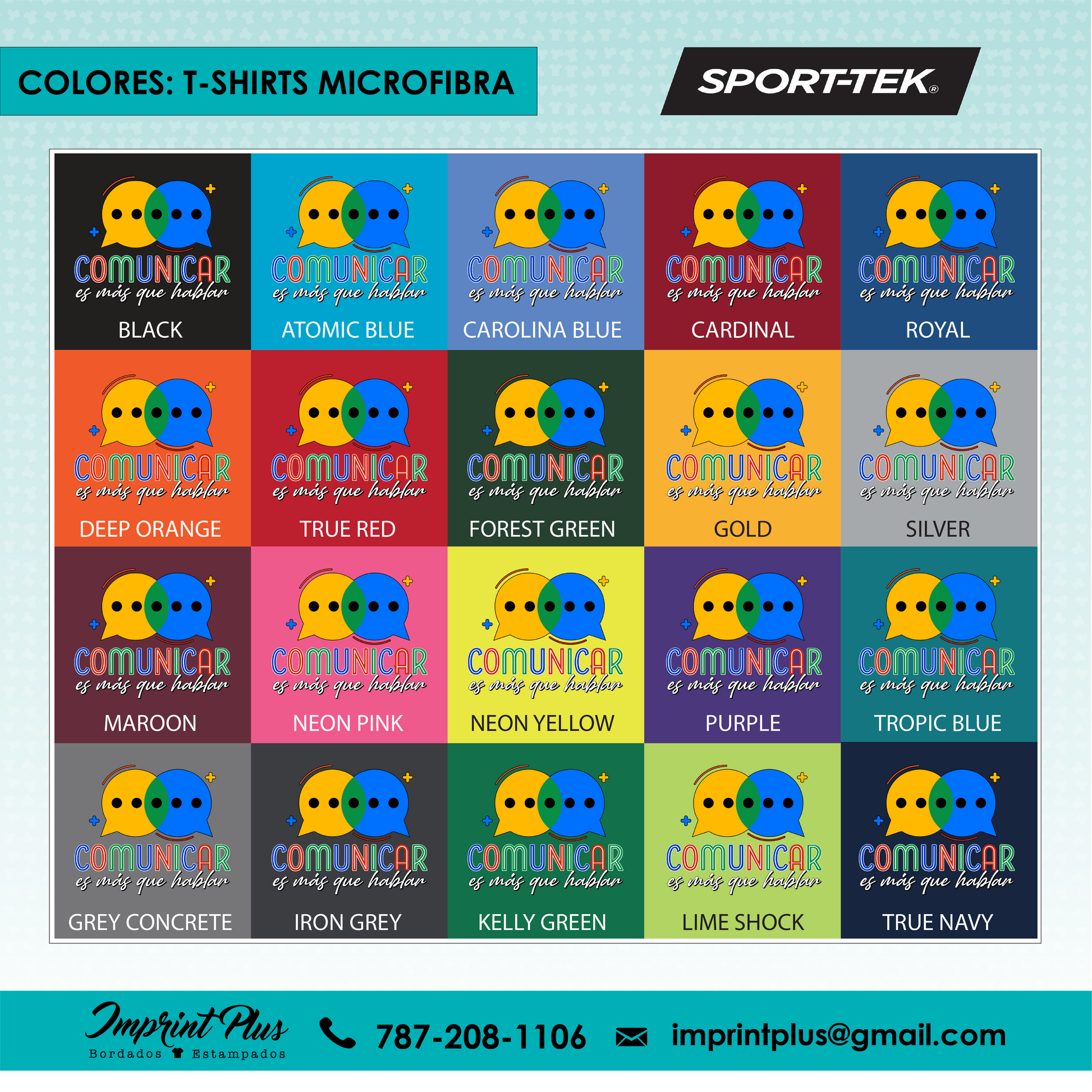 - Microfibra: Camiseta de microfibra marca Sport Tek, disponible en entalle unisex, mujer cuello V y mujer cuello redondo, ideal para un ajuste ligero y fresco.