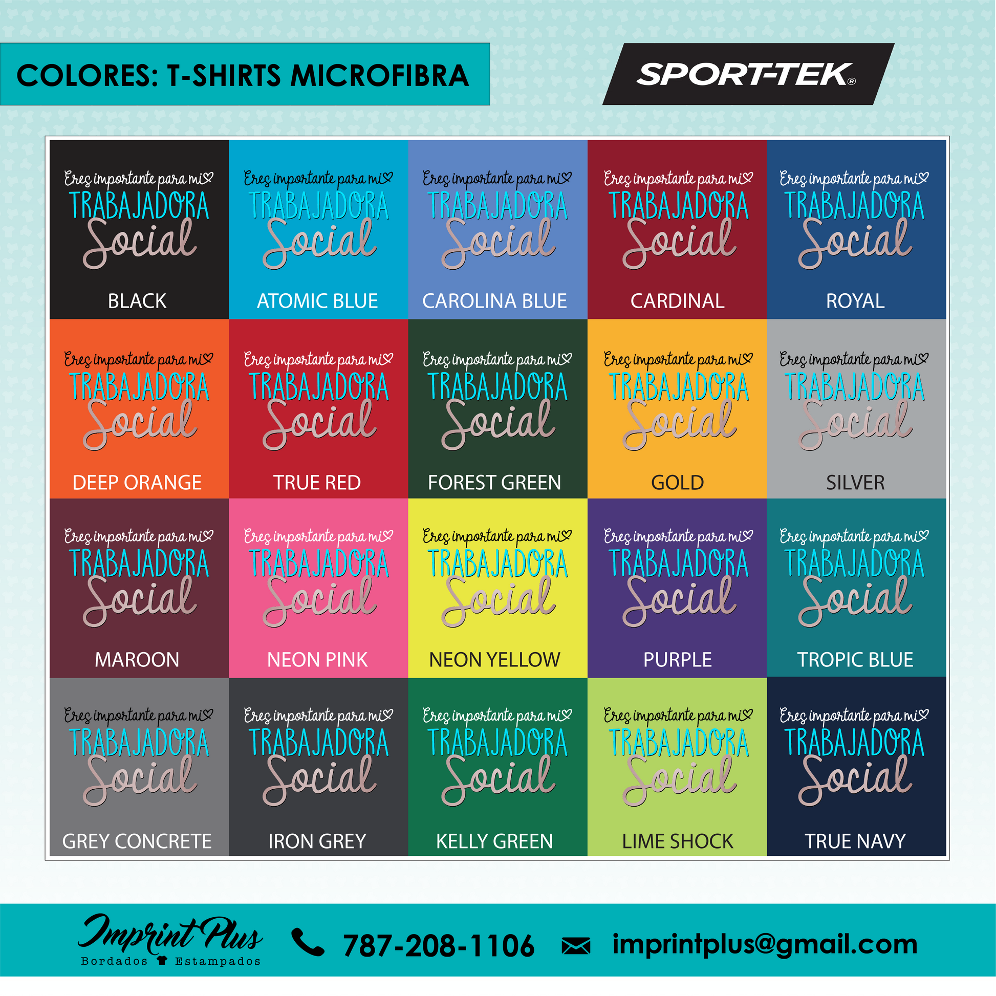 - Microfibra: Camiseta de microfibra marca Sport Tek, disponible en entalle unisex, mujer cuello V y mujer cuello redondo, ideal para un ajuste ligero y fresco.